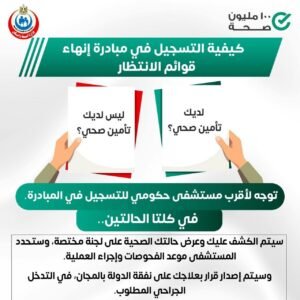 في إطار التيسير على المواطنين وتخفيف العبء عن كاهل المرضى، أعلنت وزارة الصحة والسكان عن تفعيل الآليات الرقمية للتسجيل ضمن مبادرة رئيس الجمهورية لإنهاء قوائم الانتظار للتدخلات الطبية الحرجة.