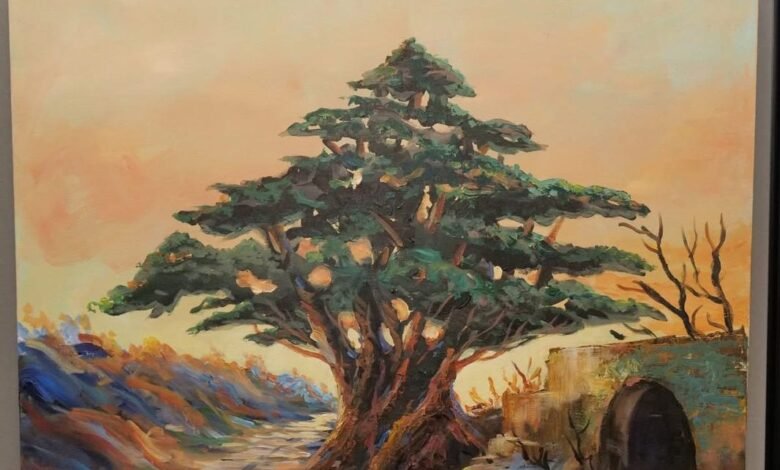 الفنانة ريما حلواني تشارك بلوحتها في معرض الفن العربي في لندن