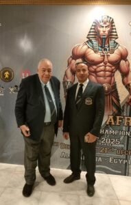 حضر الدكتور عادل فهيم رئيس الاتحاد المصري والعربي والأفريقي لكمال الأجسام ونائب أول رئيس الاتحاد الدولي لكمال الأجسام و الدكتور محمود درويش عضو مجلس إدارة الاتحاد المصري لكمال الأجسام فعاليات البطولة الأفريقية لكمال الأجسام التي تقام في الإسكندرية.